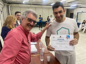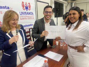 “A colaboração entre a universidade e o programa é antiga, por isso aproveitamos este contato para realizarmos a entrega dos certificados aqui”, explicou o coodernador do projeto, Mário Roberto. Unido a isso, contou sobre a importância da parceria. “Estes alunos, levando informações que adquirem em sala de aula para Cubatão, trazem benefícios para ambos os lados”.