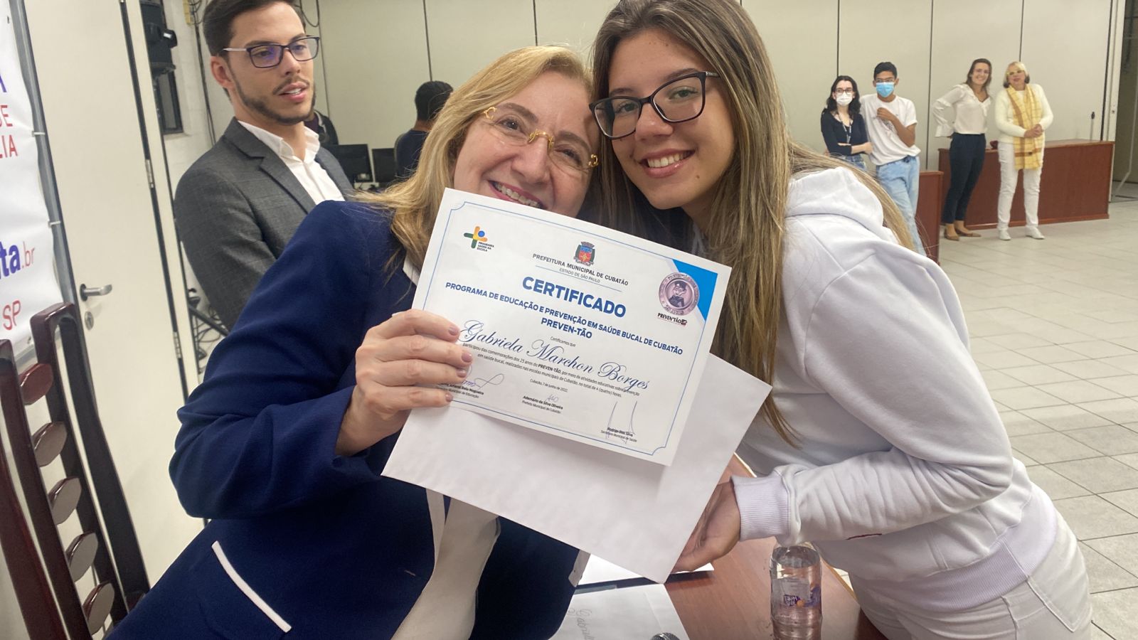 A Prefeitura de Cubatão entregou, na última terça-feira (9), os certificados do Preven-tão a alunos do terceiro ano de odontologia da Universidade Santa Cecília. A solenidade ocorreu em razão da participação dos estudantes nas atividades educativas de saúde bucal nas escolas do município, bem como em comemoração aos 25 anos do programa.