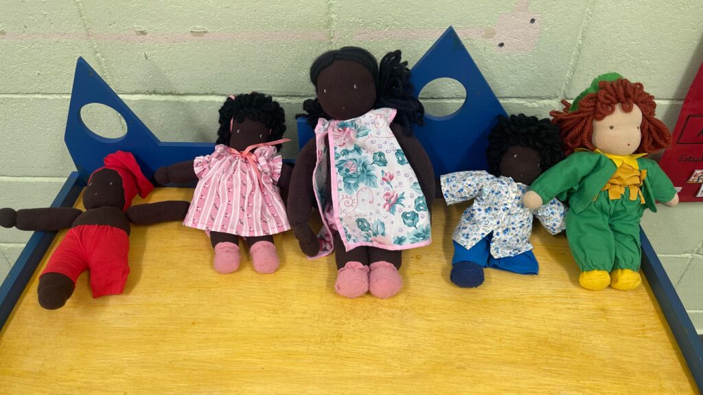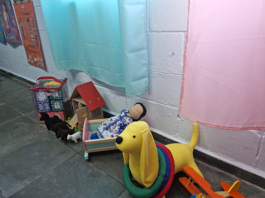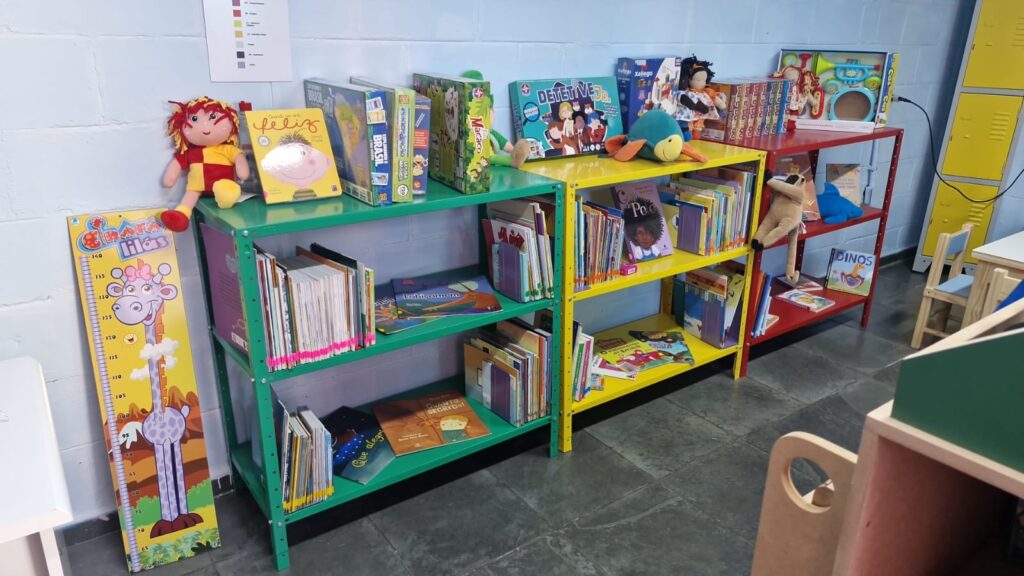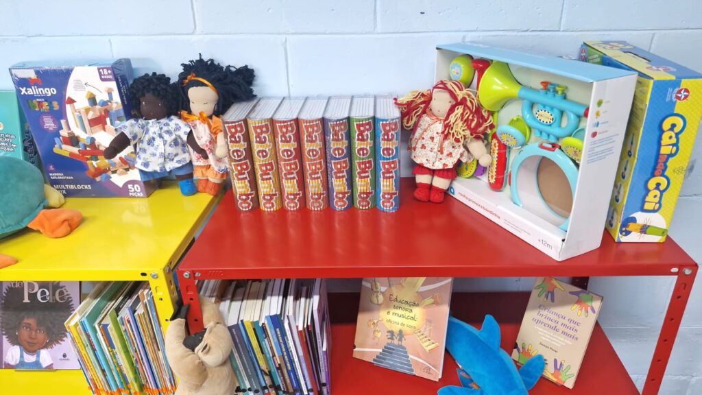 As bibliotecas possuem acervo composto por cerca de 700 itens, dos quais 400 são livros novos voltados para a faixa etária do berçário até 8 anos, e outros 20 voltados para a capacitação de educadores. Além das publicações, possui 230 itens como brinquedos educativos, jogos, bonecos e material lúdicos e mobiliário composto por mesas e cadeirinhas, armários e prateleiras de aço para acolhimento dos materiais e um teatro de fantoches.