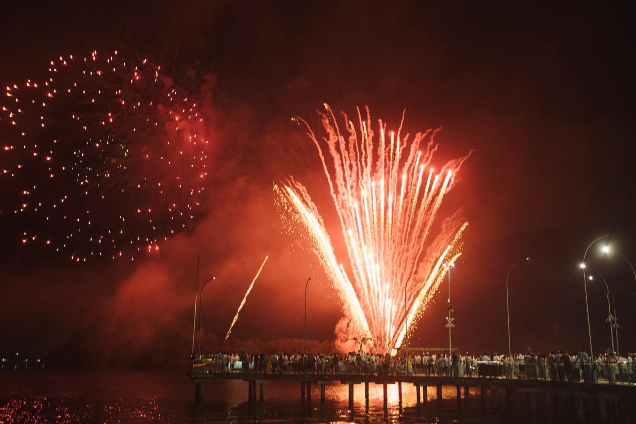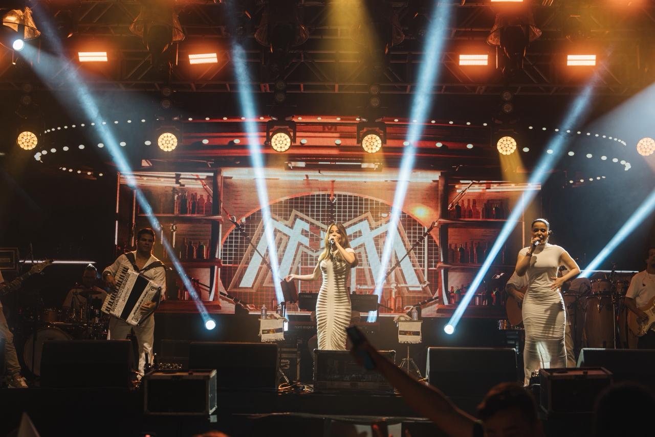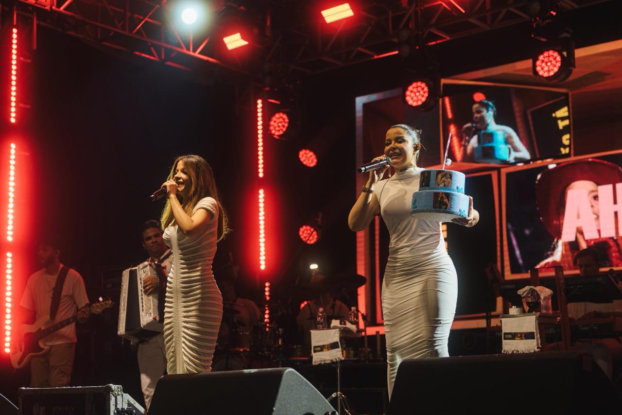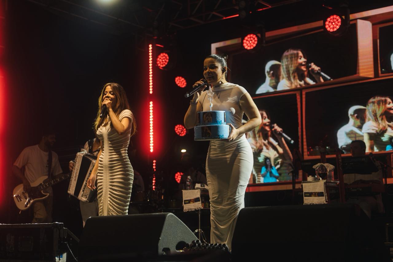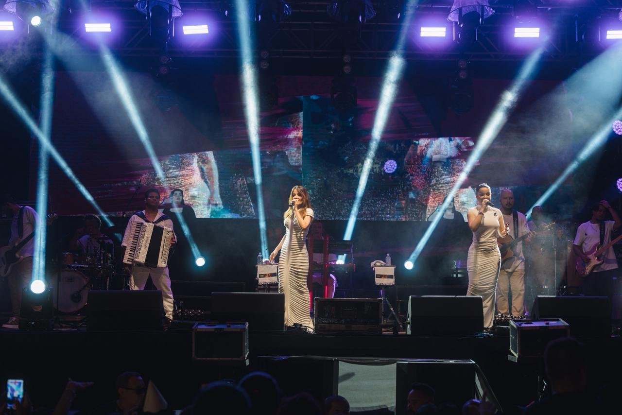 A dupla sertaneja, uma das mais queridas do Brasil, conduziu a contagem regressiva para 2026 de forma emocionante. Ao fundo, cerca de 3,5 toneladas de fogos de artifício sem estampido iluminaram o céu da cidade durante 15 minutos. Entre cumprimentos, brindes e abraços do público presente, Maiara e Maraísa interpretaram sucessos como “Medo Bobo”, “Sorte que Cê Beija Bem” e “A Culpa é Nossa”. As artistas ainda foram surpreendidas no palco com um “Parabéns pra Você”, com a presença do prefeito César Nascimento e da vice-prefeita Andrea Castro, em um momento marcado por bolo de festa e celebração.