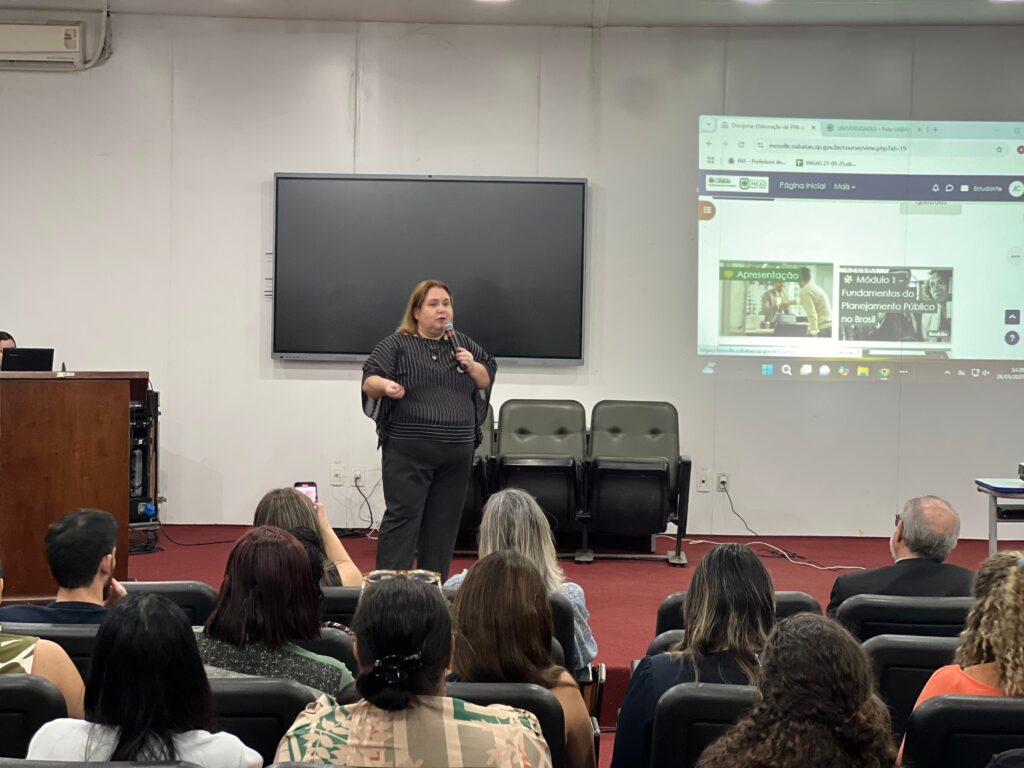 O auditório da Secretaria de Indústria, Porto, Emprego e Empreendedorismo recebeu na tarde desta segunda-feira (26), o primeiro encontro presencial com os alunos do curso ‘Planejamento Estratégico e PPA’ com foco nos ODS, voltado para os servidores públicos de Cubatão que integram a comissão responsável pela elaboração e acompanhamento do Plano Plurianual (PPA) 2026-2029, Lei de Diretrizes Orçamentárias (LDO) 2026 e Lei Orçamentária Anual (LOA) 2026.