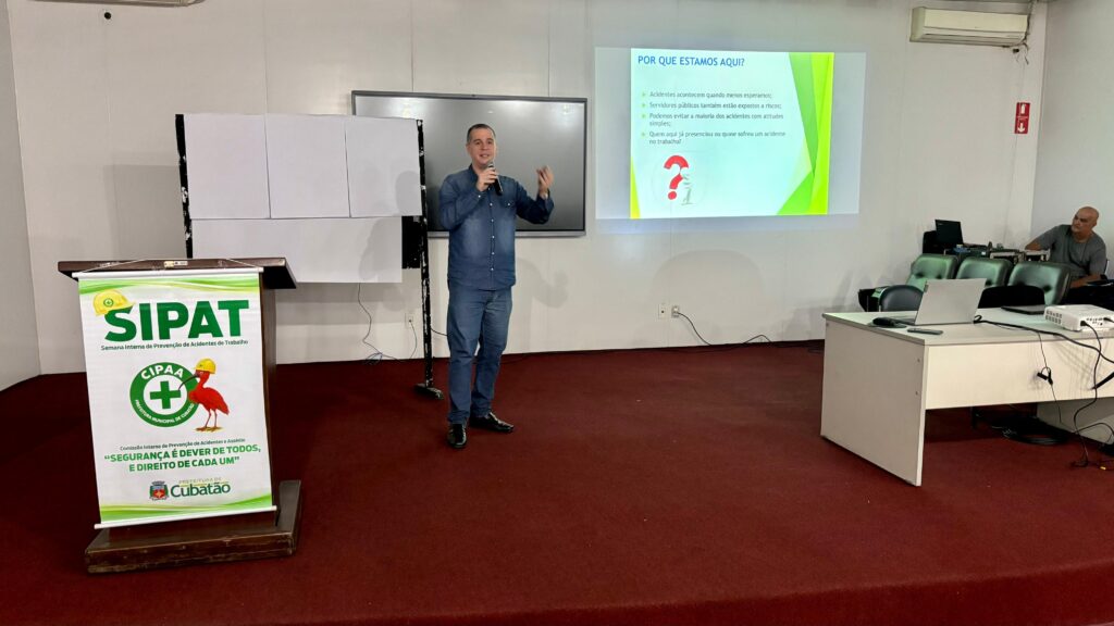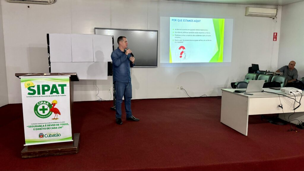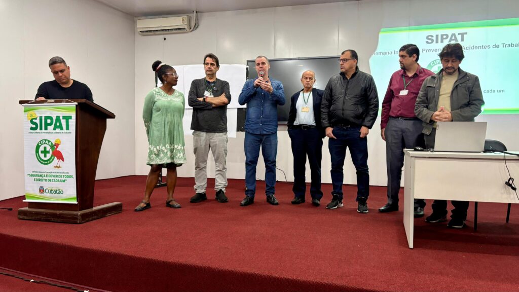 A Secretaria Municipal de Gestão deu início à 2ª Semana Interna de Prevenção de Acidentes de Trabalho (SIPAT), nesta terça-feira (26), programação especial que foca na segurança e bem-estar dos servidores públicos de Cubatão. A solenidade de abertura aconteceu nesta manhã, no auditório da Secretaria Municipal Indústria, Porto, Emprego e Empreendedorismo (Semipee), com a presença de autoridades e membros da Comissão Interna de Prevenção de Acidentes e Assédio (CIPAA), da Prefeitura de Cubatão, que organizou todo o evento.