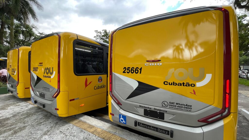 Os usuários do transporte público municipal de Cubatão passam a contar com novos veículos na frota que atende a Cidade. A Prefeitura de Cubatão entregou 12 novos ônibus nesta quarta (18). A cerimônia aconteceu na Esplanada do Paço Municipal. A medida atende ao anseio da população e veio como forma de renovar parte da frota identificada com a necessidade de substituição natural pelo tempo de uso. Os coletivos possuem novo layout na cor amarela e têm a figura do guará-vermelho, símbolo da recuperação ambiental da cidade.