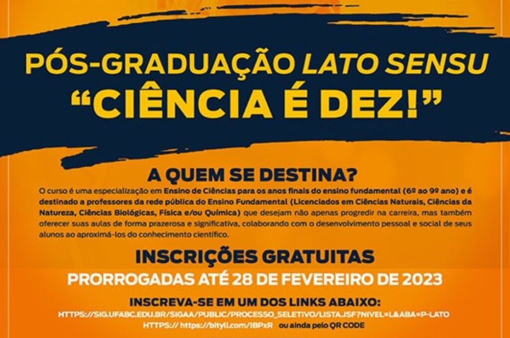 Interessados podem se inscrever pelo link https://sig.ufabc.edu.br/sigaa/public/processo_seletivo/lista.jsf?nivel=L&aba=p-lato