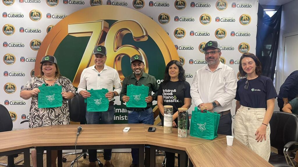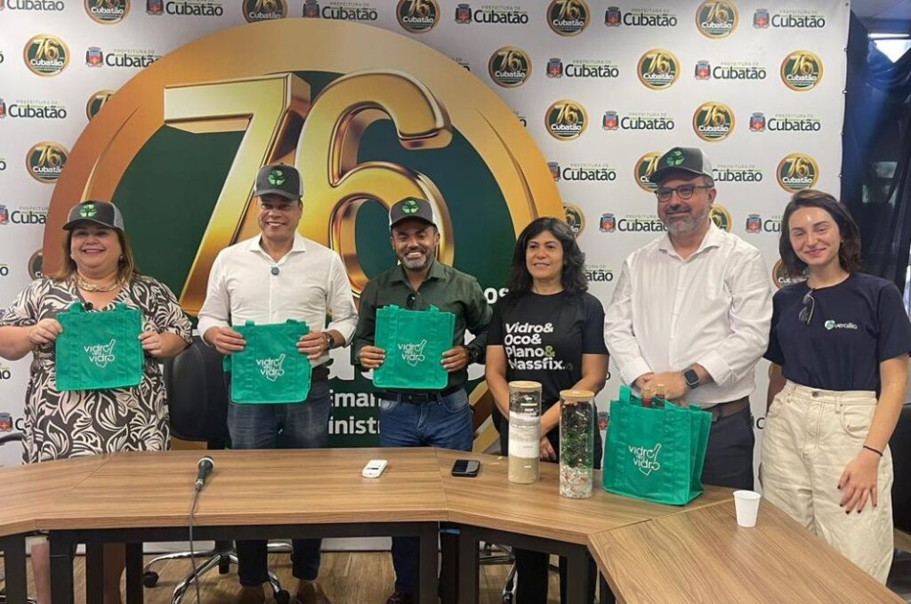 Cubatão, reconhecida por sua trajetória de recuperação ambiental, celebra mais um marco na política de sustentabilidade com o lançamento do programa o Programa Vidro Vira Vidro. A iniciativa, que estabelece pontos de entrega voluntária (PEV) de vidro, é fruto de uma parceria estratégica entre a Secretaria de Meio Ambiente, Segurança Climática e Bem-estar Animal (Semam), e duas empresas, uma a maior de reciclagem de vidros da América Latina e outra atualmente líder na fabricação de embalagens de vidro. São 15 equipamentos de coleta instalados, no início desta semana, em frente a próprios públicos e comércios no município (confira os locais no final do texto). A solenidade de entrega foi nesta quarta-feira (3), na sala de reuniões do gabinete do prefeito.